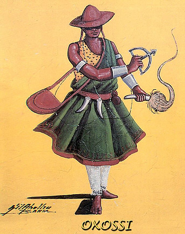 Oxóssi (Òsóòsi) é o deus caçador, senhor da floresta e de todos os seres que nela habitam, orixá da fartura e da riqueza. Atualmente, o culto a Oxóssi está praticamente esquecido na África, mas é bastante difundido no Brasil, em Cuba e em outras partes da América onde a cultura iorubá prevaleceu. Isso deve-se ao fato de a cidade de Kêtu, da qual era rei, ter sido destruída quase por completo em meados do século XVIII, e os seus habitantes, muitos consagrados a Oxossi, terem sido vendidos como escravos no Brasil e nas Antilhas. Esse fato possibilitou o renascimento de Kêtu, não como estado, mas como importante nação religiosa do Candomblé.